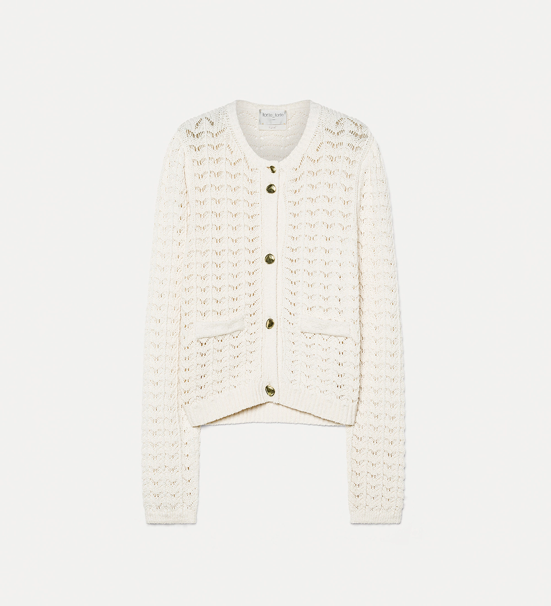 Note romantiche sul capo più trendy di stagione, per un cardigan elegante proposto in maglia di cotone lavorato con un effetto crochet. i bottoni bijoux dalla forma organica e il punto spugna sul bordo tasca aggiungono dolcezza ad un cardigan pensato per lasciar intravvedere la pelle.