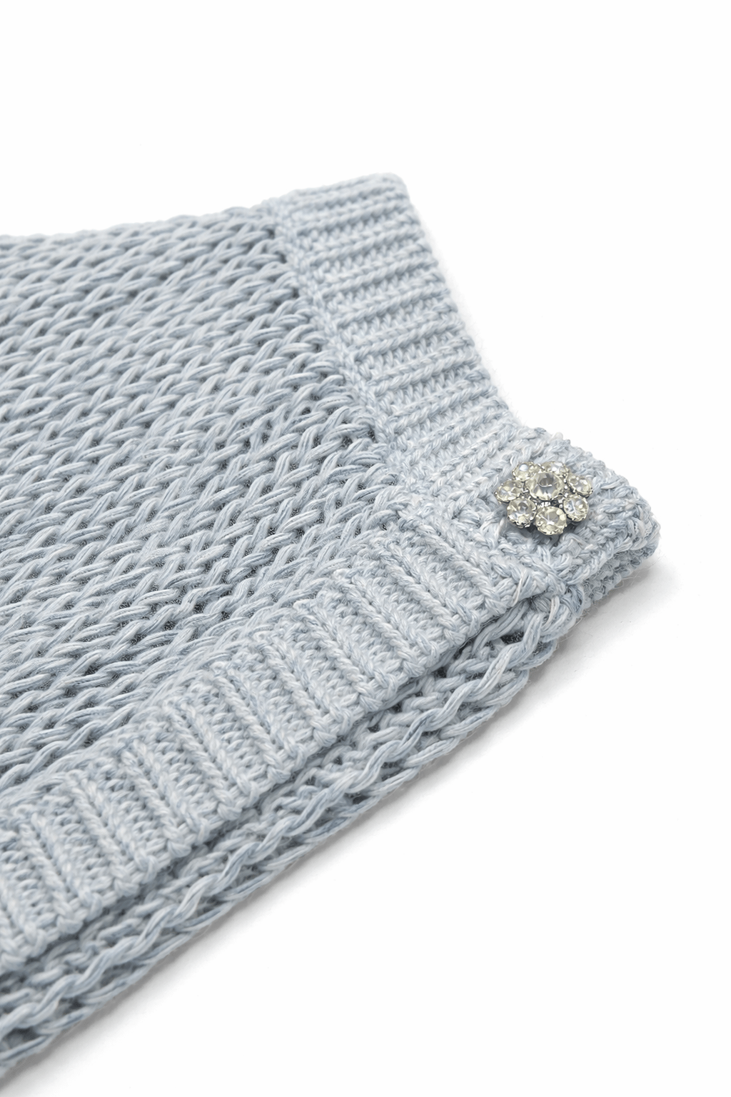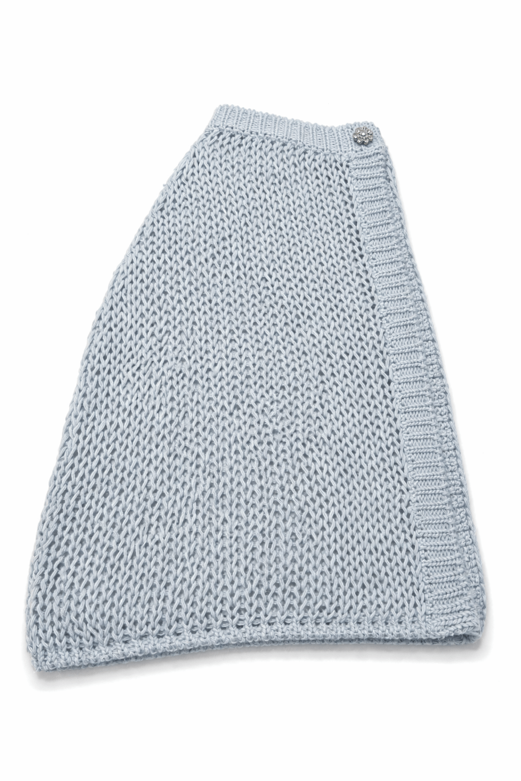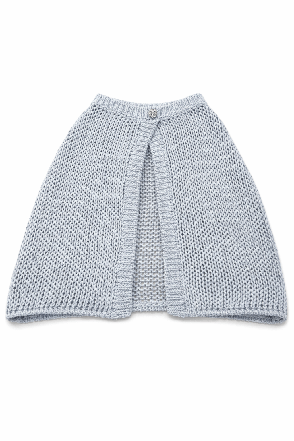 Mantella in maglia con bottone gioiello, realizzata in Italia e rifinita a mano. Un capo delicato e ricercato, dalla linea morbida e avvolgente.
